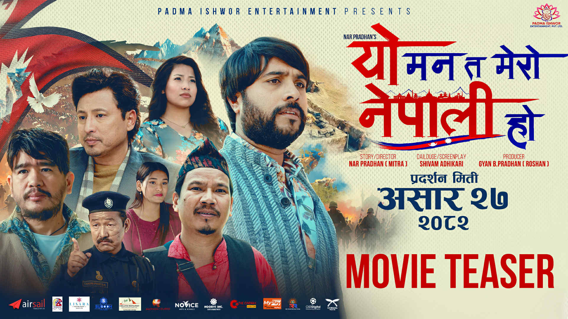 काठमाडौं । चलचित्र ’यो मन त मेरो नेपाली हो’ को टिजर सार्वजनिक भएको छ । चलचित्रको सार्वजनिक टिजर नेपाली भाषा, साहित्य, कला, यसको ईतिहास, महत्व र नेपाली भाषाको गौरवसंगै नेपाली को हुन् भन्ने विषयबस्तुलाई उठान गर्न खोजेको छ । असार २७ गतेबाट प्रदर्शनमा आउन लागेको चलचित्र ’यो मन त मेरो नेपाली हो’ मा रोशन श्रेष्ठ, विजय बराल ,विल्सन विक्रम राई, बुद्धि तामाङ ‘हैट’, आयुषा समाल, नारायण खाती,भुपेन्द्र लिङ्देन “मन्त्री“,सुबास भन्डारी,बिजय सुब्बा,बिजिता परियार , देवराज राजबन्शी,भानुभक्त सिटौला लगायतको अभिनय रहेको छ।