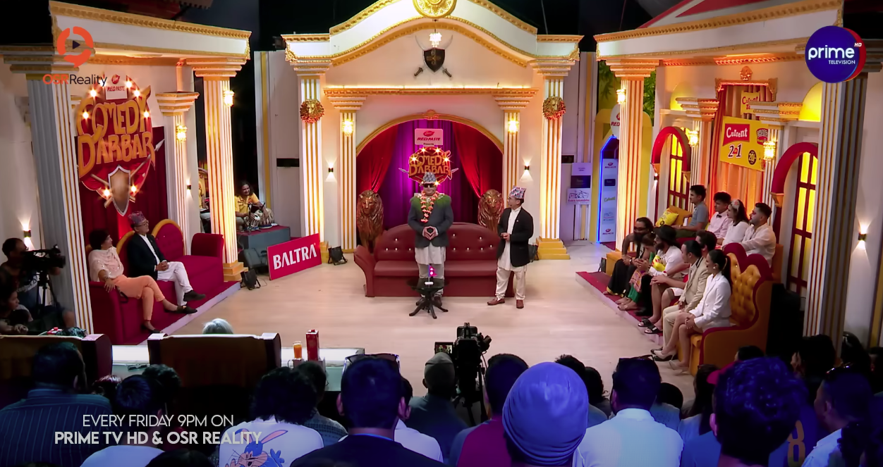 काठमाडौँ । लोकप्रिय टेलिभिजन शो कमेडी दरबार पछिल्लो समय निकै चर्चामा रहेको शो हो । यस शोमा चर्चित कलाकार देखी शिर्ष नेताहरु पाहुनाको रुपमा पुगिरहेका हुन्छन् । शोको डिजाइन, फर्मेट र कलाकारहरुको प्रस्तुतीले दर्शकलाई निकै मनोरन्जन दिइरहेको छ । शोको दोस्रो सिजनको पनि १२ भाग पुगिसकेको छ । अहिलेसम्म शोले राम्रो उचाई पाइरहेको छ । युट्युव, फेसबुक, टिकटक लगायतका सोसियल साइटहरुमा कमेडी दरबारका क्लिपहरु भाइरल बनिरहेका हुन्छन् ।